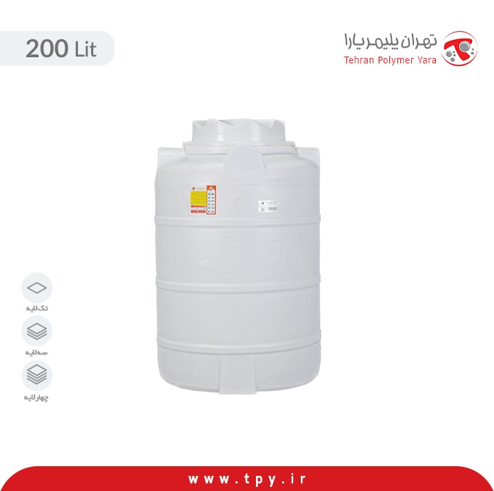 منبع ۲۰۰ لیتری عمودی از مواد اولیه درجه یک و باکیفیت پلی اتیلنی ساخته میشود. این محصول دارای قطر ۵۹ سانتیمتری و ارتفاع ۹۴ سانتیمتری است و همچنین برای مخزن ۲۰۰ لیتری عمودی یک درب به قطر ۳۳ سانتیمتر طراحی شده است که به شما کمک میکند در صورت نیاز بتوانید به راحتی به محتویات داخل مخزن دسترسی پیدا کنید. از منبع ذخیره ۲۰۰ لیتری عمودی، برای مصارف مختلفی اعم از خانگی، صنعتی، کشاورزی و… استفاده میشود. این مخزن، امکان ذخیره کردن انواع مایعات در گروههای مواد غذایی مختلف را دارد و از سه نوع تک لایه، سه لایه و چهار لایه به صورت آنتی باکتریال تولید میشود و برای موقعیتهای مکانی که محدودیت عرضی دارد، مناسب است