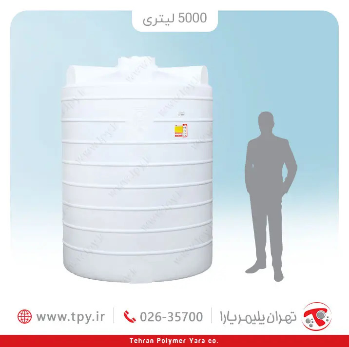 مخزن ۵۰۰۰ لیتری عمودی بلند تهران پلیمر یارا یکی از انواع مخازنی است که بیشتر برای استفادههای در مقیاس بزرگ کاربرد دارد. تانکر ۵۰۰۰ لیتری عمودی بلند دارای ۱۷۴ سانتیمتر قطر و ۲۳۸ سانتیمتر ارتفاع است و همچنین برای این محصول دو درب به قطر ۵۵ سانتیمتر و ۳۳ سانتیمتر طراحی شده است که به شما این امکان را میدهد تا در صورت لزوم بسیار راحت بتوانید به محتویات داخل مخزن دسترسی داشته باشید. تانکر آب ۵۰۰۰ لیتری عمودی بلند سه لایه از جنس پلی اتیلن FOOD GRADE PE3840 MDPE است که مناسب ذخیرهسازی آب شرب میباشد و به دلیل داشتن خاصیت ضد خوردگی، امکان نگهداری طیفی وسیعی از مایعات با PH اسیدی و بازی در این مخزن ذخیره وجود دارد. با توجه به توصیه سازمان آب و فاضلاب کشور، به طور متوسط برای هر واحد مسکونی میبایست ۲۵۰ لیتر آب در طول شبانه روز جهت ذخیره سازی در نظر گرفت، پس میتوان نتیجه گرفت که یک مخزن ۵۰۰۰ لیتری عمودی بلند برای یک ساختمان ۲۰ واحدی ایدهآل میباشد. البته شما در خرید مخزن محدودیتی ندارید و میتوانید برای هر واحد لیتراژ بیشتری در نظر بگیرید و منبع ذخیره بزرگتری تهیه کنید.