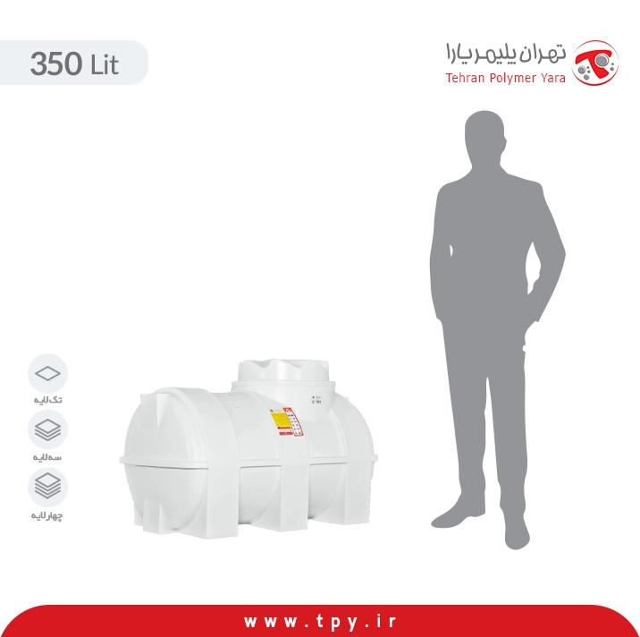 مخزن آب 350 لیتری افقی سه لایه هیدروفوب پلیمر یارا